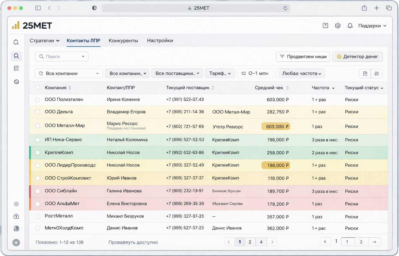 Даем контакты ЛПР, частоту сделок, средний чек и текущего
