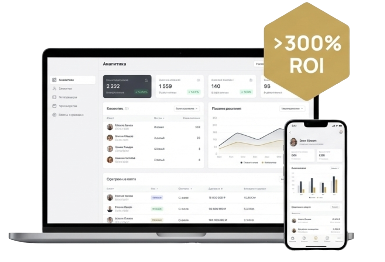- Ваш ROI>300% в первый месяц работы с нами